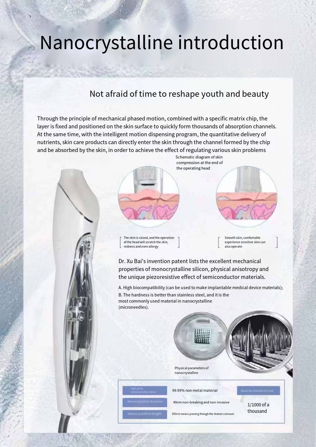 Yüz Kollajeninin Girişi İçin Sığ Rehber Aracı, Nano Mikrokristal İğne Serbest Su Işık Nemlendirici